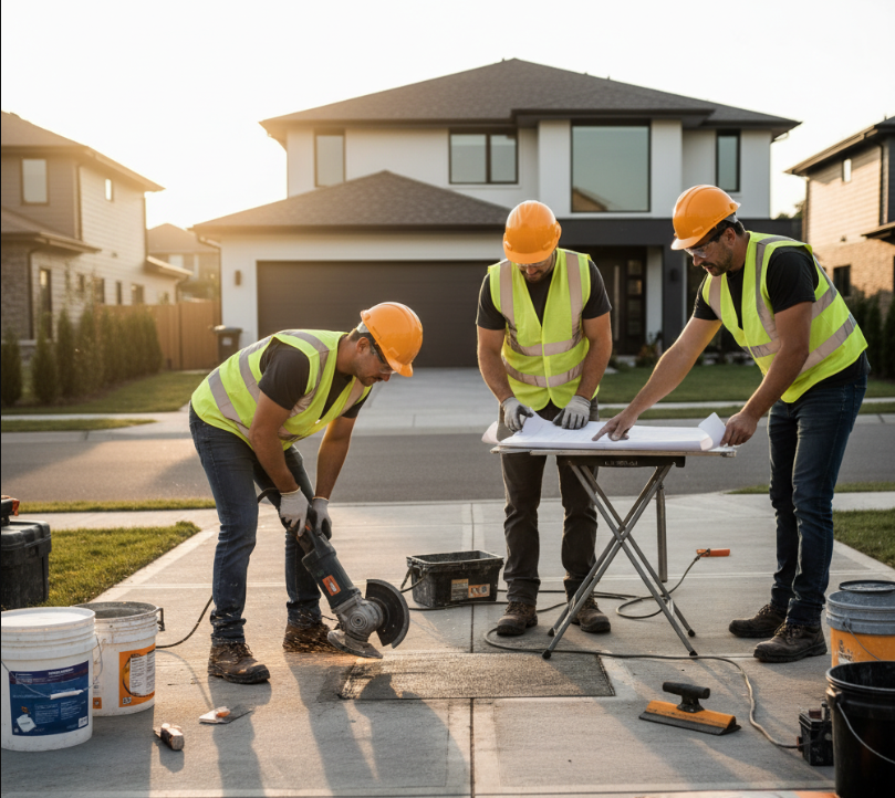 Professional contractors use specialised tools like concrete grinders, resurfacing machines, and injection systems for crack repair. These tools, combined with modern repair materials such as polymer-modified overlays and epoxy injections, guarantee superior adhesion and durability compared to generic DIY products.