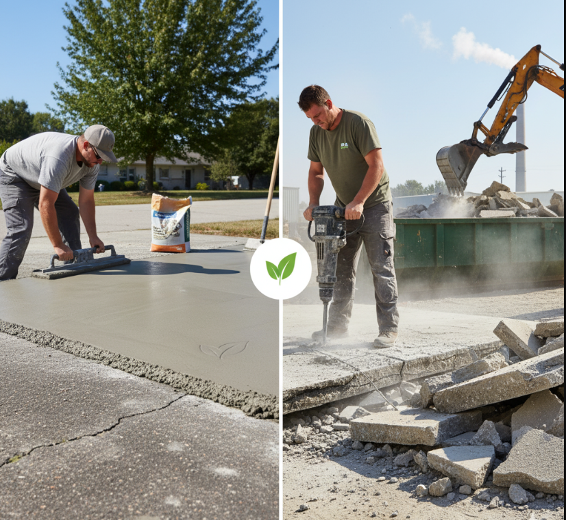 This comprehensive guide will break down both options, their costs, benefits, and when each is the most practical solution. We’ll also cover eco-impact, contractor selection tips, and answer the most common questions related to these concrete repair options.
