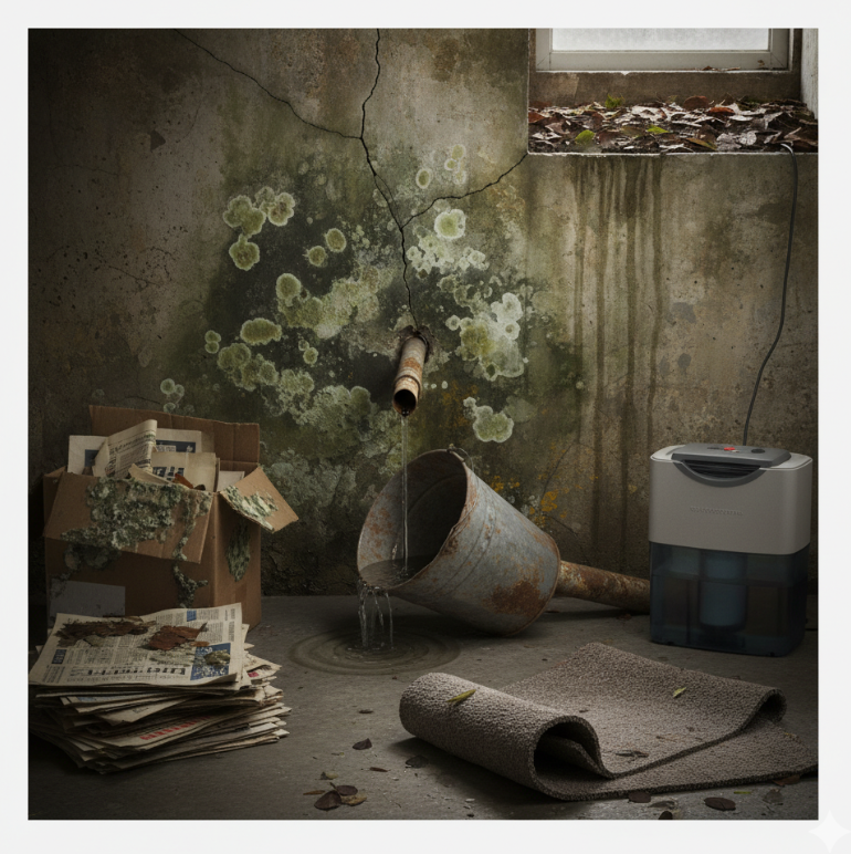 Water intrusion from cracks in foundation walls, leaking pipes, or past flooding is one of the most direct causes of basement mold. Even small leaks can saturate materials like wood, drywall, and carpeting, fostering mold colonies.