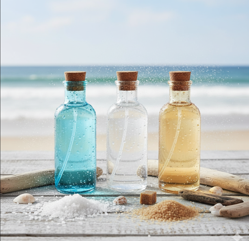 Although both formulas rough up the cuticle for grip, sea salt and sugar mists create different beachy effects on layered hair.