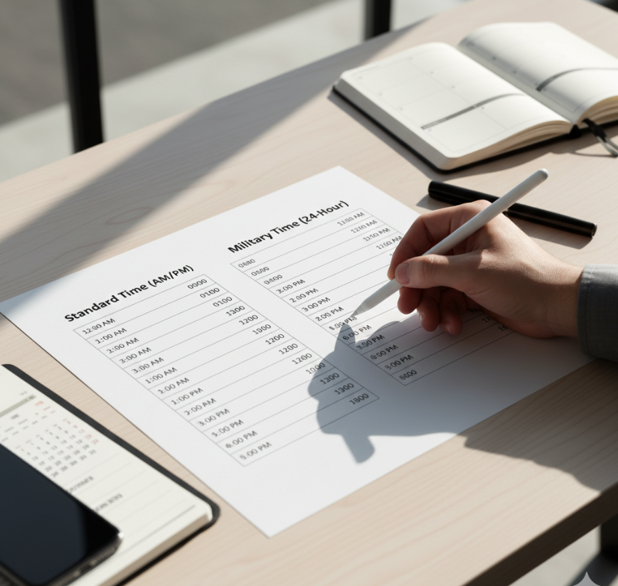 - Avoid errors: never use 2400, keep four digits, and don’t mix AM/PM labels with military time.