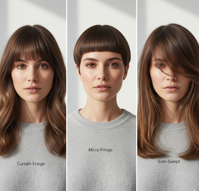 Match fringe styles to hair texture: denser hair benefits from internal debulking, fine hair from light feathering. Calibrate length to your cowlicks and parting.